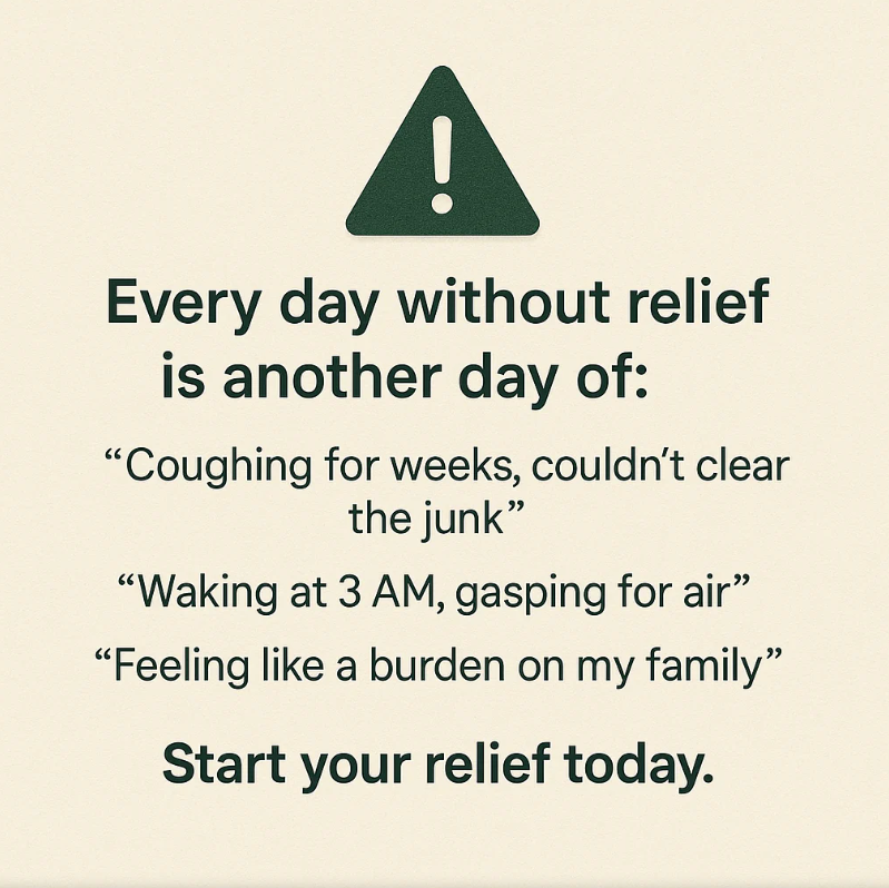 OTC expectorants work too slowly—taking weeks when you need relief NOW. Meanwhile, you're "always coughing to the point I couldn't do nothing."